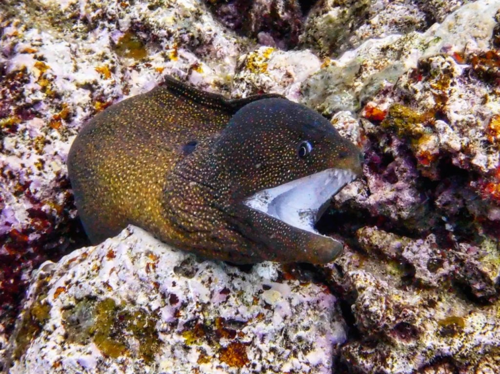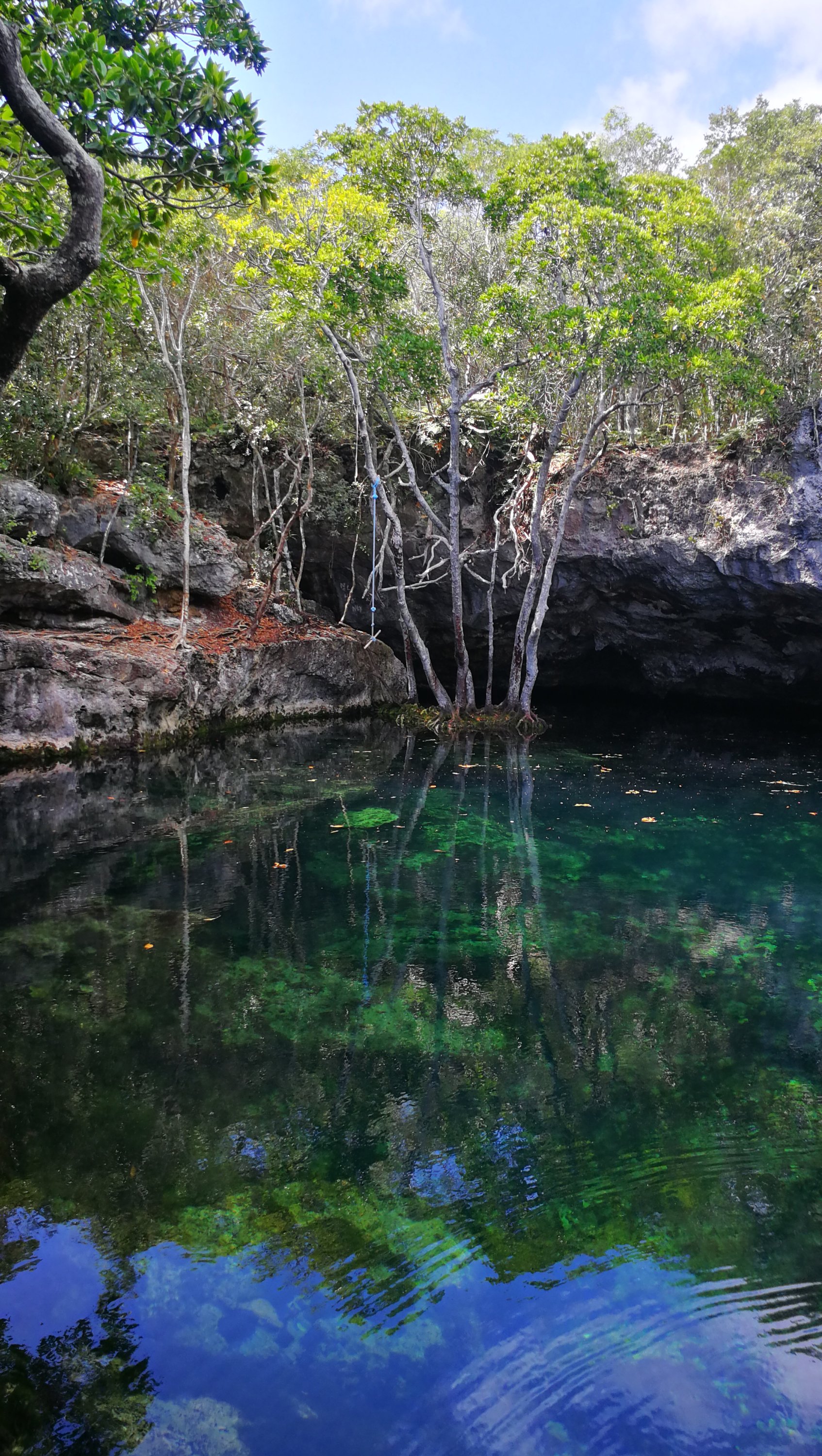 Cette fois-ci, on y a visité les Pléiades du Nord, une grotte grandiose et un trou bleu de 30 mètres de diamètre – en 1980, le Commandant Cousteau avait tenté de trouver le fond, sans succès.