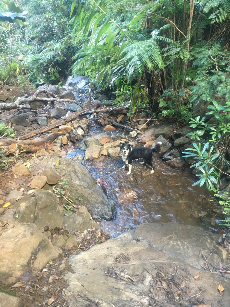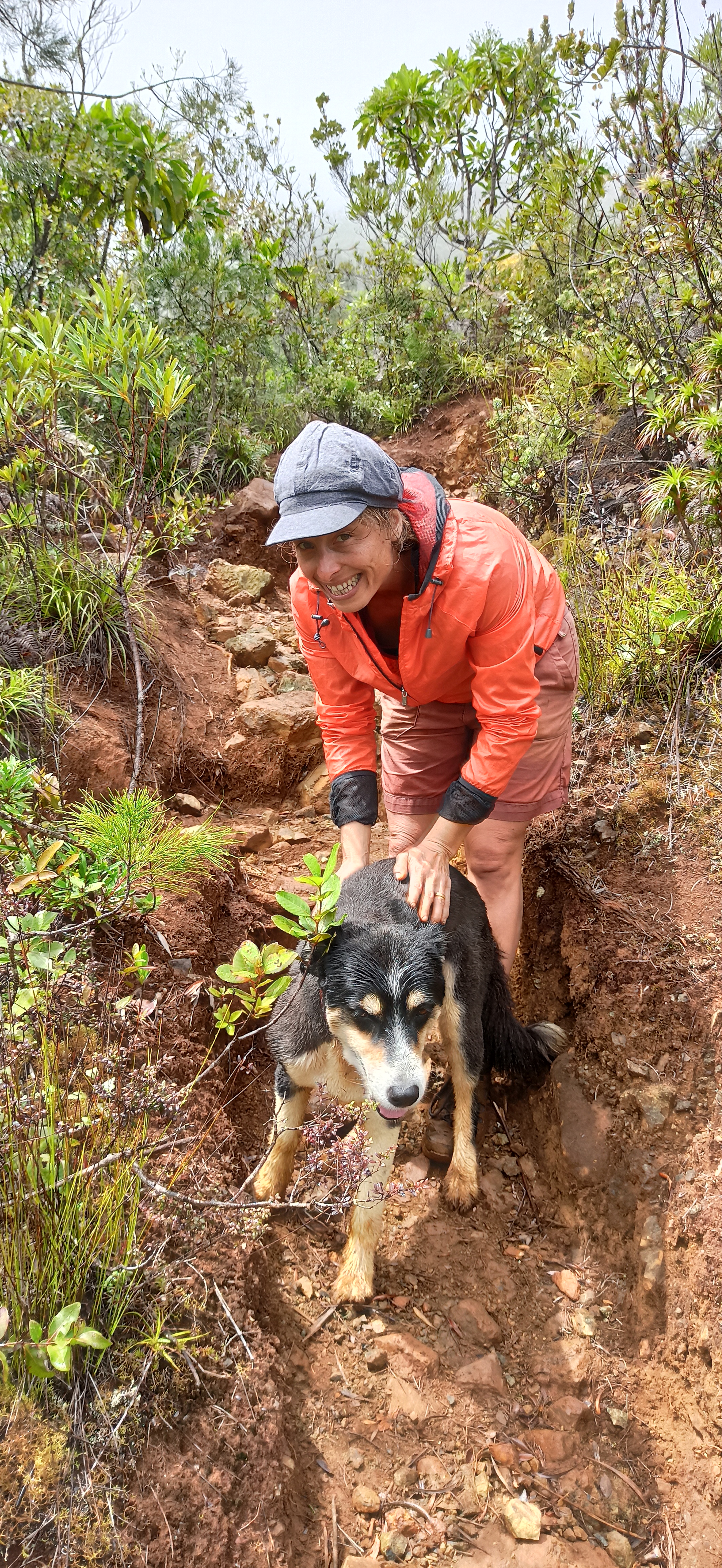 Nous n’avons pas eu trop chaud du tout, aucun coup de soleil à déplorer, une énergie débordante pour Bobby dans une grimpette impressionnante de 2h30, aucun blessé hormis quelques égratignures et une vue bouchée… Ah benh oui, on s’est chopé THE nuage de pluie durant les 4h30 de rando 😅😫! Les kwayS et les chaussures n’ont pas résisté à ce flux d’eau en continu… VinDieu, au moment de l’arrêt pic-nic on a même eu froid et je me suis prise à rêver d’une soupe bien chaude ou d’un chocolat chaud !