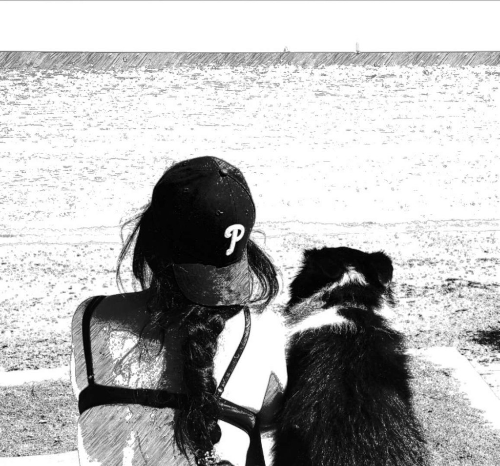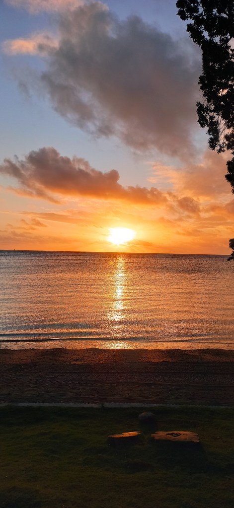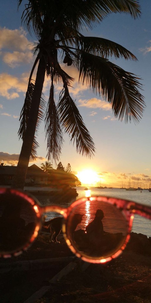 Ici, avec le décalage horaire, le foot se regarde tôt le matin avec un cafè 😅Les petits moments plage entre filles mais toujours en compagnie de Bobby !Petite pose avec sa tata 😄Et tjs les fabuleux SunsetS !