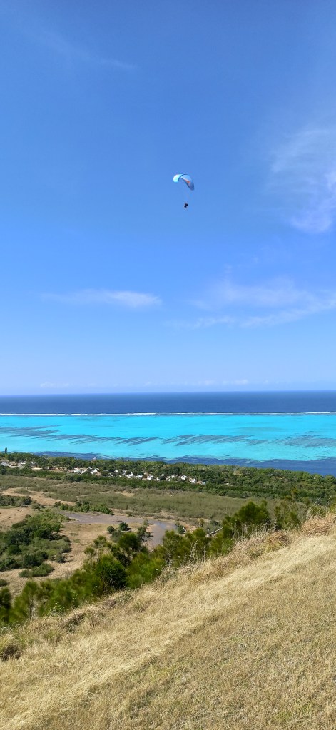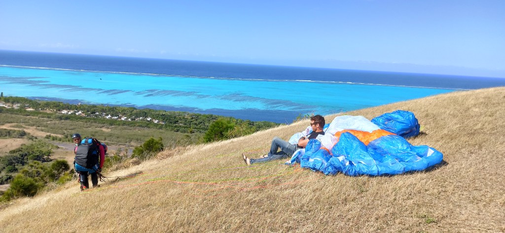 Au moment du décollage, j’avais quand même le trouillomètre à 9 sur une échelle de 10! Faut dire que j avais vu Amoresss se faire balancer comme une herbe folle au moment de son décollage au sunset du vendredi. Du coup, j ai un peu hésité à le faire aussi et puis je me suis lancée le dimanche et là, ce fut juste splendide!