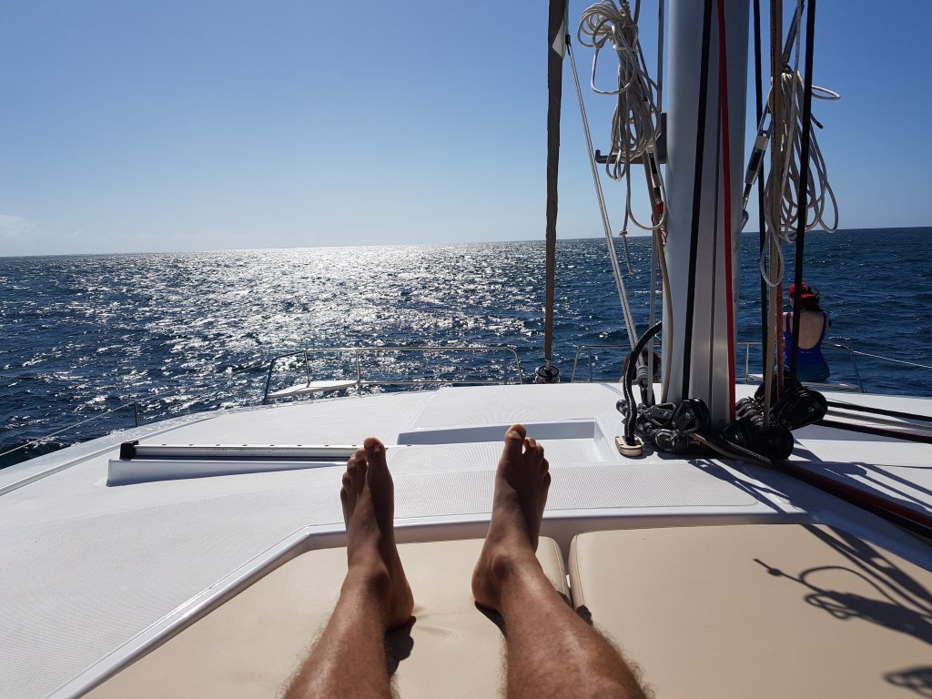 Avec les copains, nous avons loué un catamaran pour un petit break au milieu de l’ocean pacifique.