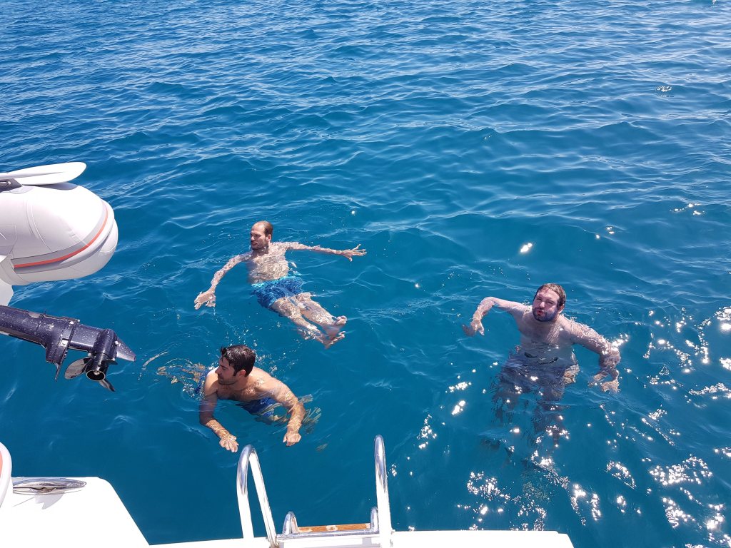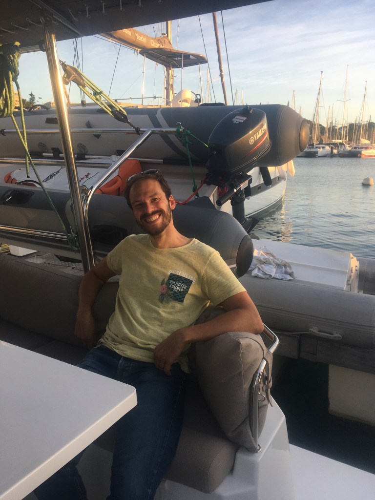 Alors oui, y a eu des kwacks et des petits moments de stress…ils feront partie des souvenirs aussi … – des cendres de barbecue partout dans le cata tout blanc, une ancre mal accrochée ou pas accrochée du tout, une amende, des bières renversées, un peu de mal de mer, un GPS qui ne nous localise plus… bref, l’Aventure avec un grand A ; merci à notre skipper !
