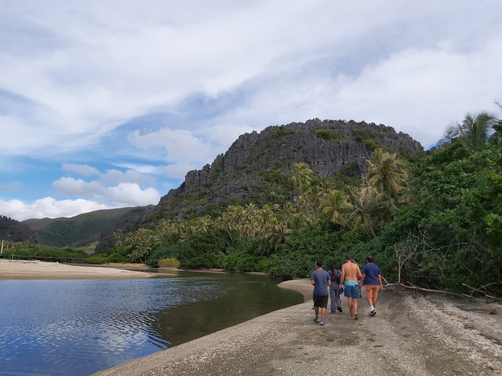 Sur le retour de ce petit bout de paradis, le moral est toujours au top. On se réjouit d’avance des prochains paysages à découvrir. Arrivés sur la terre ferme, on s’arrête au spot de La plage Blanche pour un petit barbecue sauvage avant de reprendre la route vers Koumac où nous attend une petite rando et la découverte de grottes.