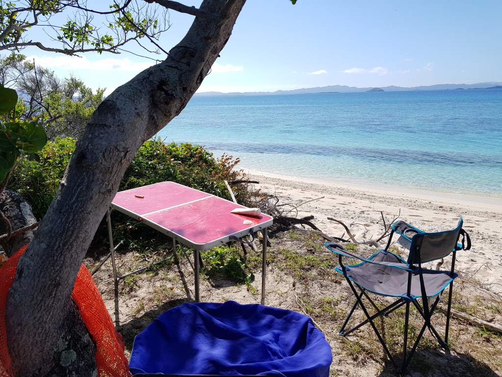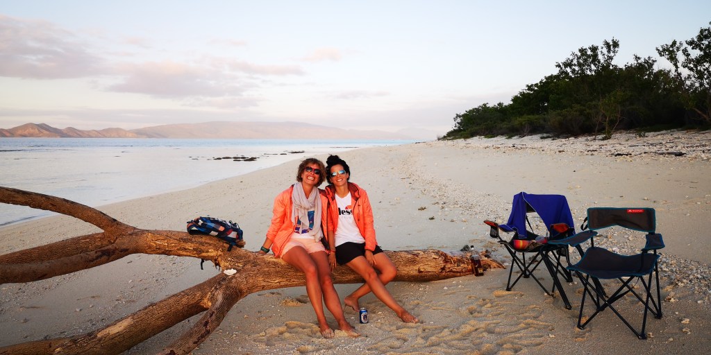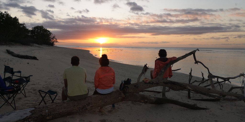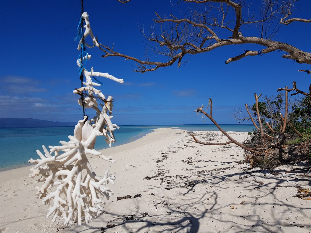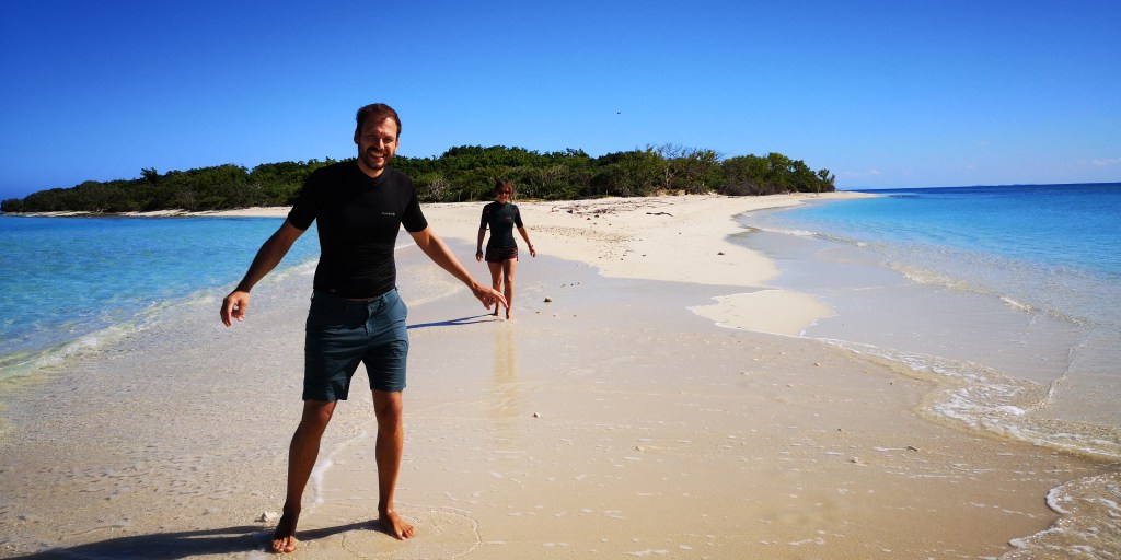 Le temps passe vite quand on s’amuse, les arrêts de 2-3 jours à gauche et à droite prennent du temps. Ça fait déjà 1 semaine qu’on bourlingue. Au programme, un premier petit îlot avec une belle langue de sable; l’ilôt Tchambouene – qui se situe à environ 30 minutes de la terre. On y passera la nuit en tente, seuls, comme perdus au bout du monde. Si ça c’est pas du luxe…
