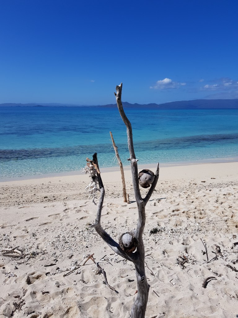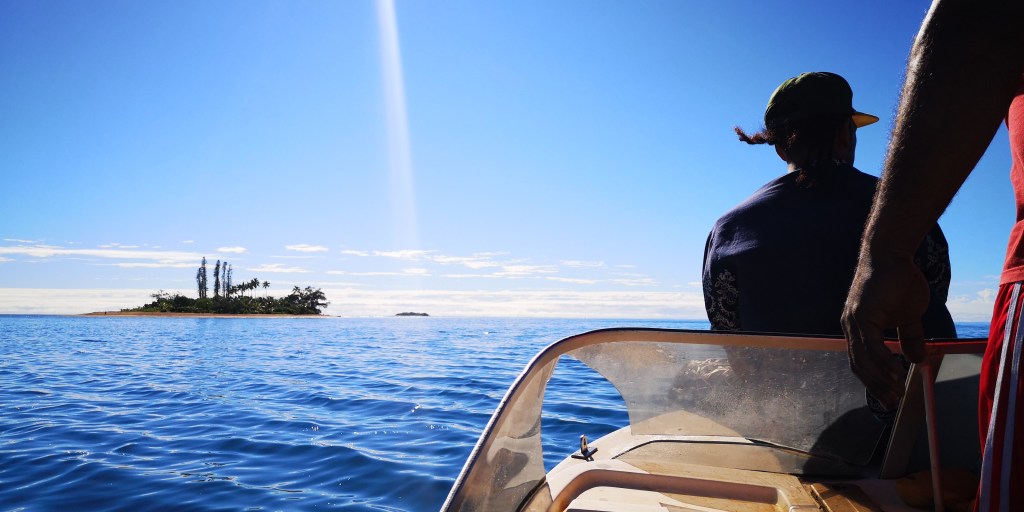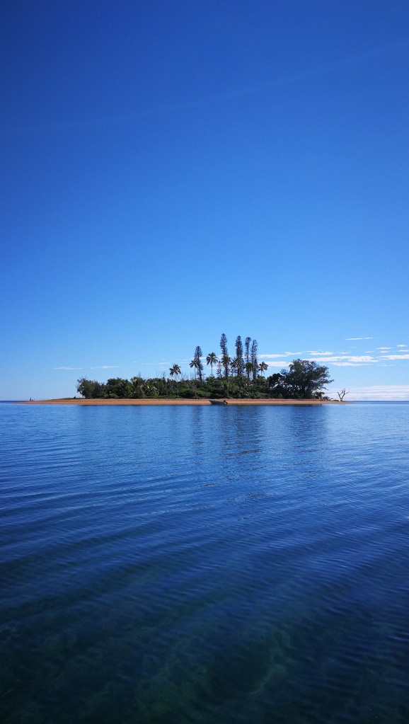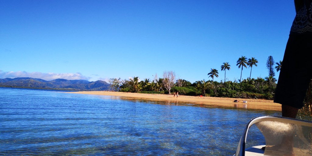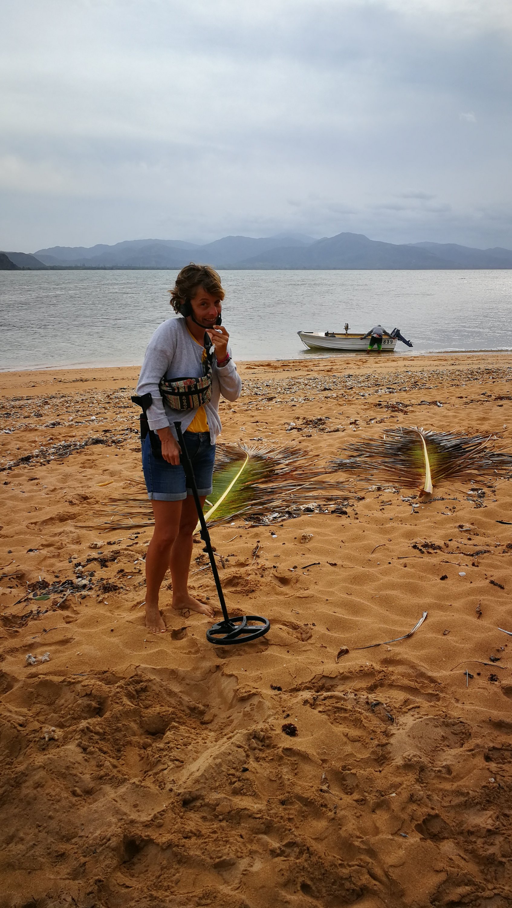 10 jours plus tard, armés d’un détecteur de métaux, nous avons refait la route pour Houaïlou (près de 8h A/R) et chercher un bateau pour le transfert vers l’îlot. Les personnes qui nous y avait emmené précédemment ne pouvaient plus le faire car leur bateau était en panne. Il nous a fallu près de 4h pour trouver une bonne âme, j’ai cru rentrer bredouille plus d’une fois et Tim a même penser à faire la traversée en kayak mais il y avait beaucoup de vent et la mer était très agitée…