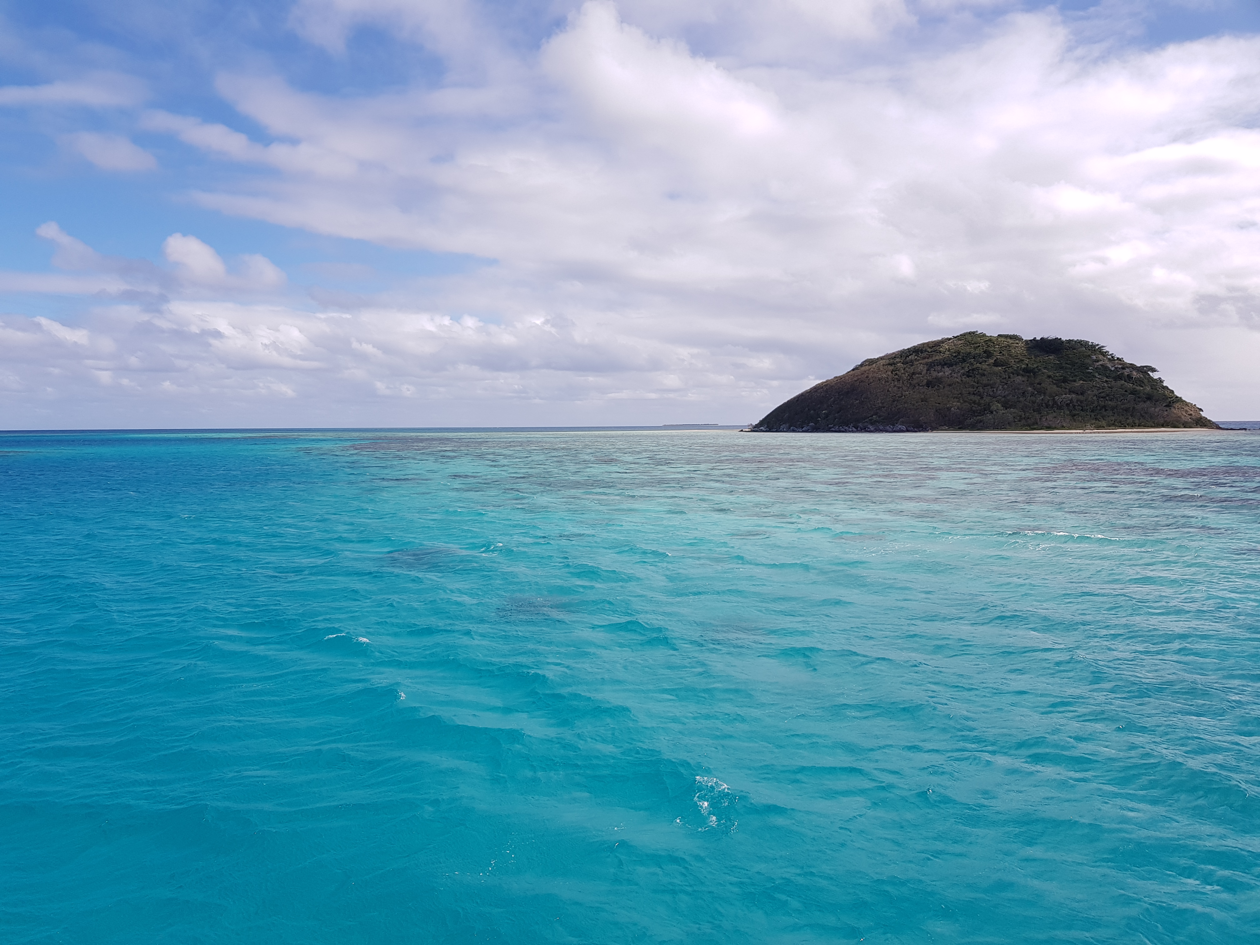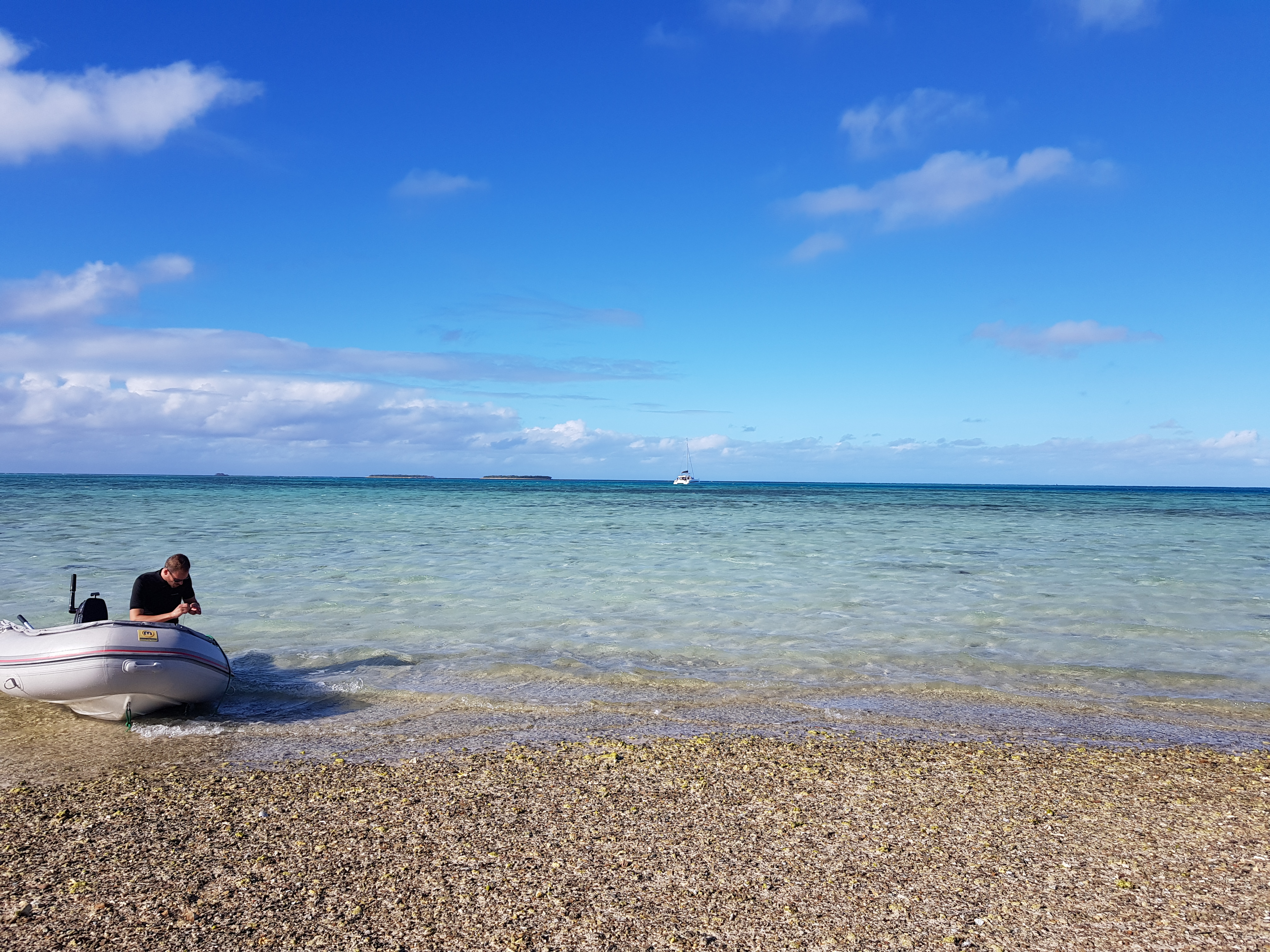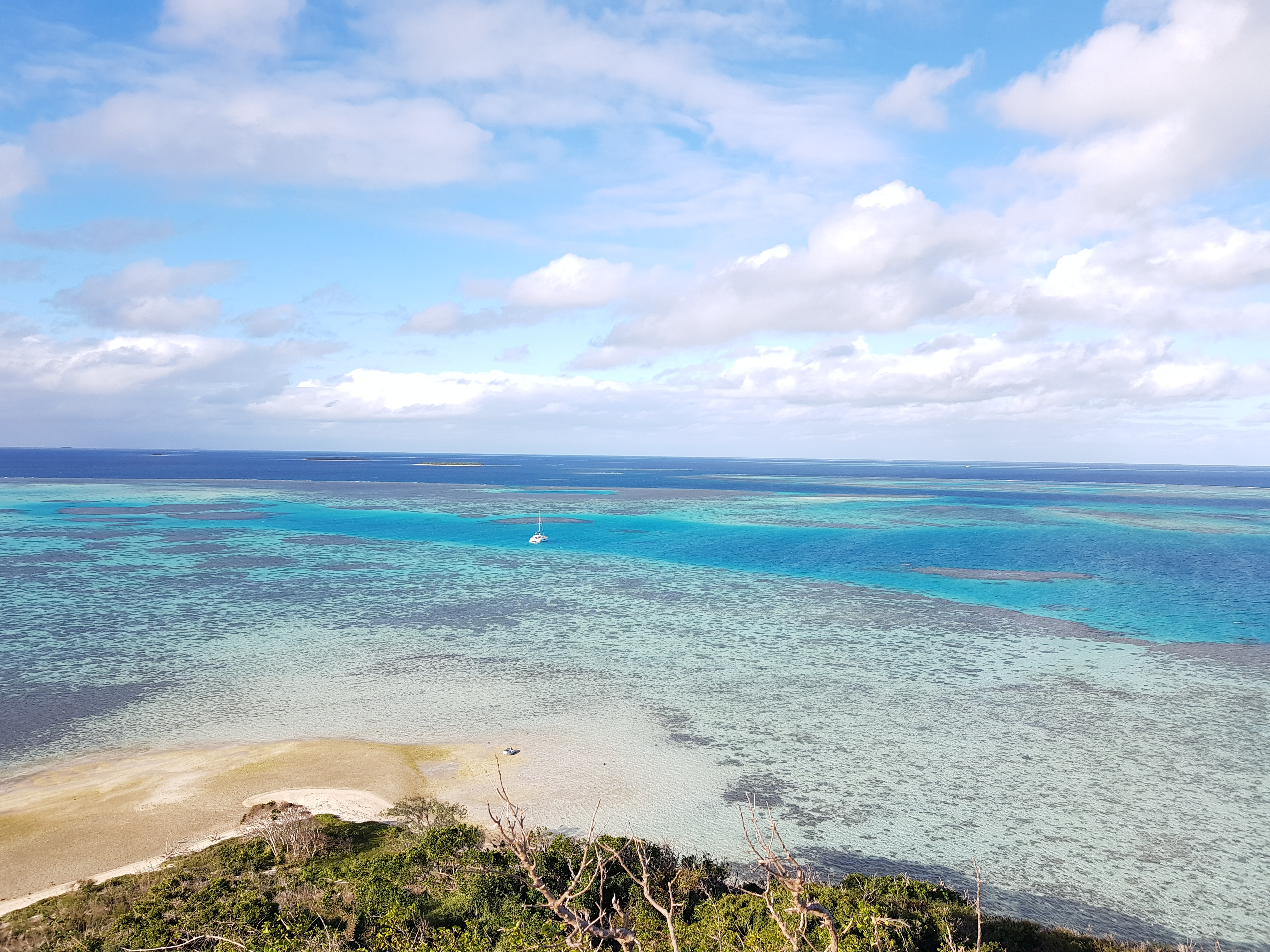 10 jours plus tard, armés d’un détecteur de métaux, nous avons refait la route pour Houaïlou (près de 8h A/R) et chercher un bateau pour le transfert vers l’îlot. Les personnes qui nous y avait emmené précédemment ne pouvaient plus le faire car leur bateau était en panne. Il nous a fallu près de 4h pour trouver une bonne âme, j’ai cru rentrer bredouille plus d’une fois et Tim a même penser à faire la traversée en kayak mais il y avait beaucoup de vent et la mer était très agitée…