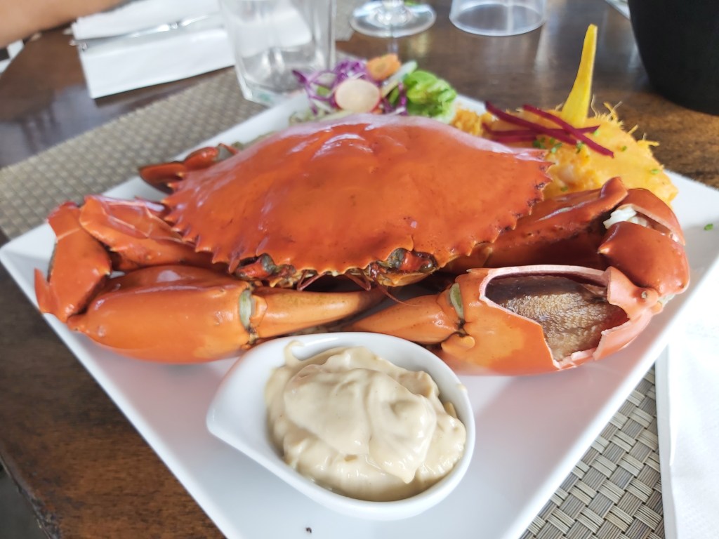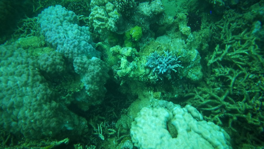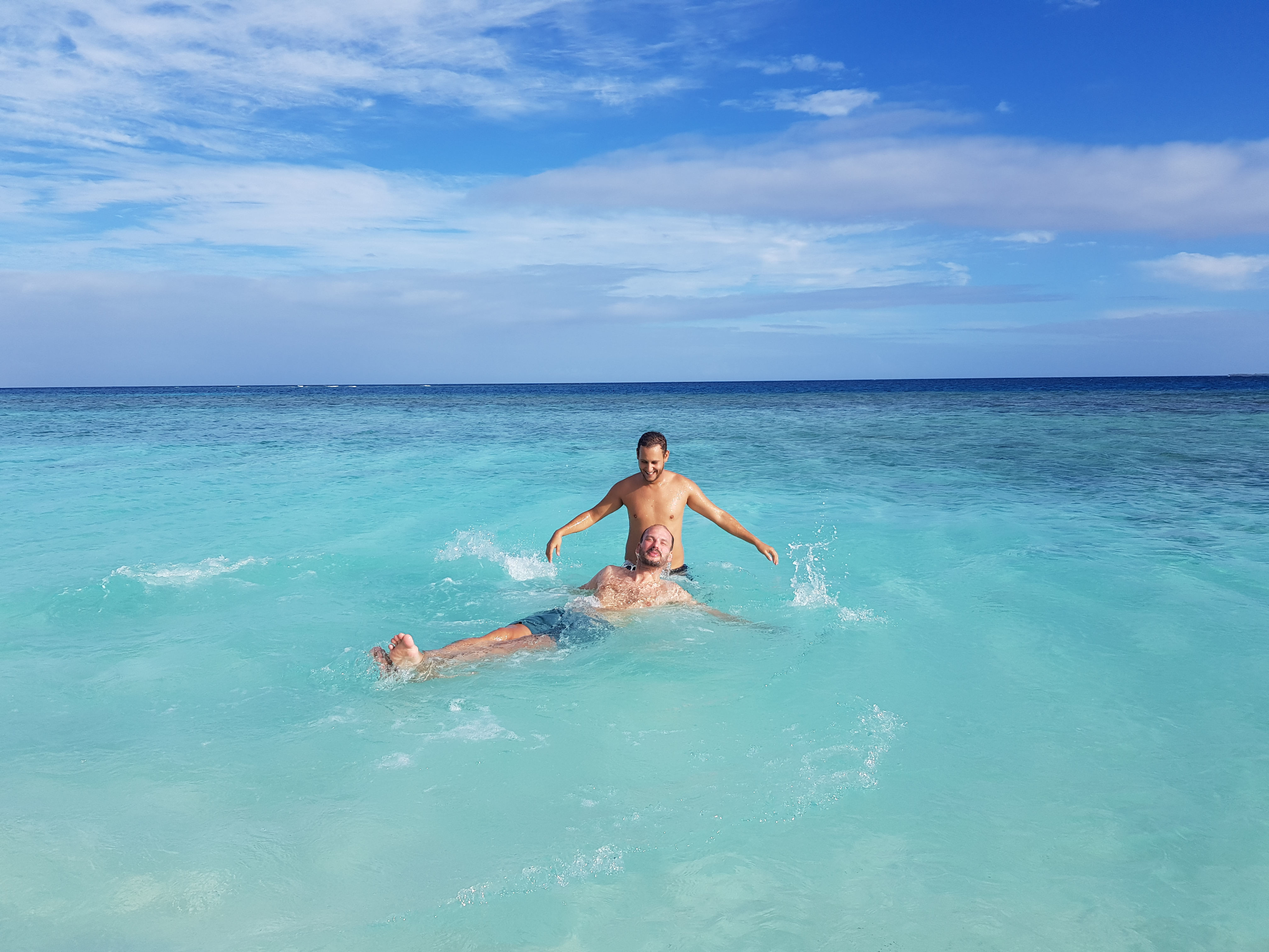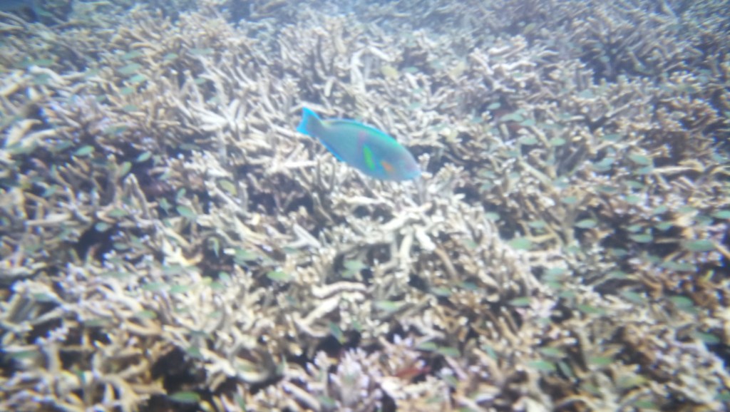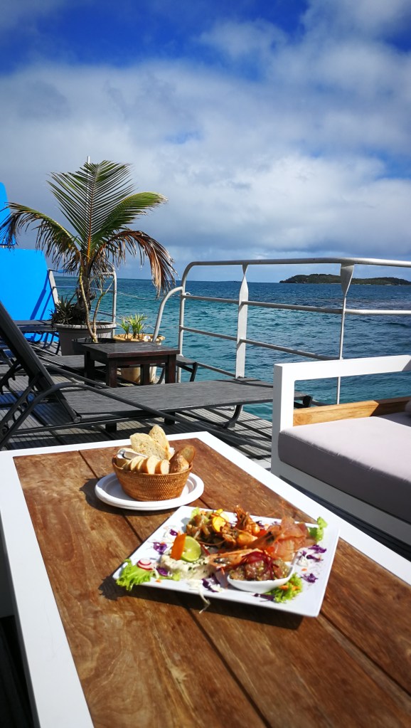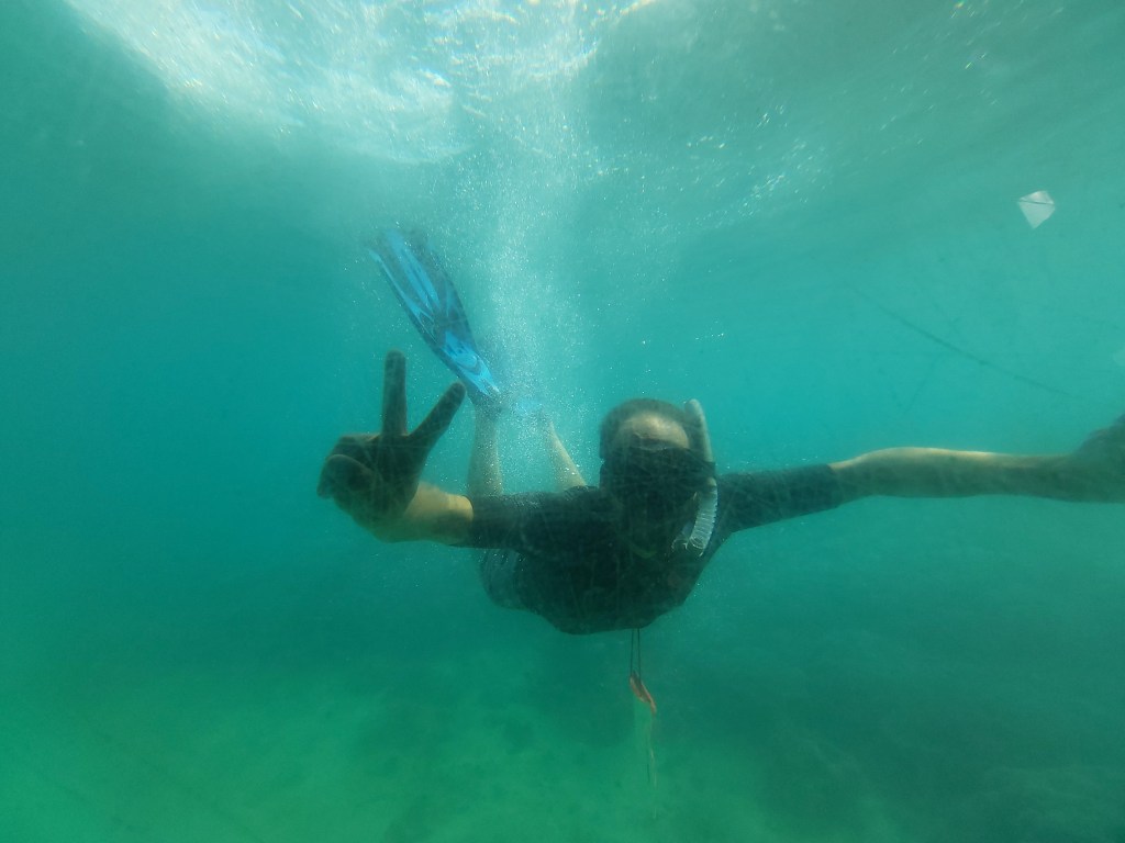 Alors, juste avant l’apéro et le repas langouste/crabe, on a enfilé nos palmes-masques et tubas pour barboter parmi les petits et gros poissons.