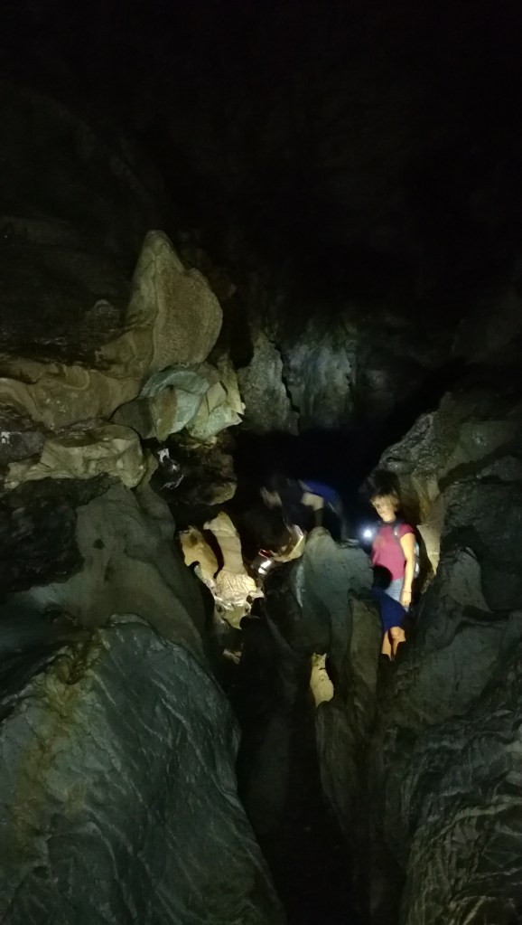 C’est relativement flippant de s’enfoncer ainsi dans les terres. Chacun muni d’une petite lampe ou d’un gsm, on a crapahuté dans la grotte pendant près de 2h.