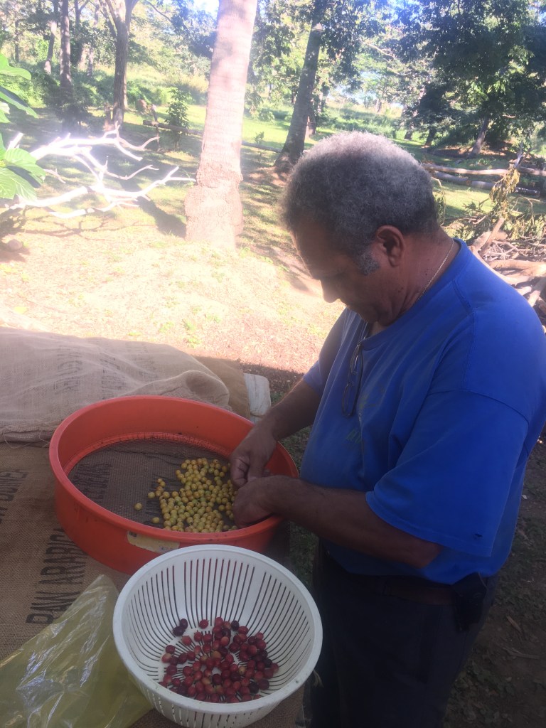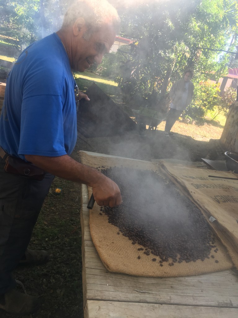 Début de week-end entre filles (fin juin) ! Mes deux comparses n’ont jamais vu le cœur de Voh, du coup on part avec un peu d’avance sur les garçons qui nous rejoindront le lendemain. Arrêt au camping de l’écoMusée comme lors de notre trip de 12 jours, le soleil est au rdv : vernissage d’une expo peintures en soirée et le lendemain, pendant que les filles admire le cœur, moi j’apprends à torréfier le café calédonien.