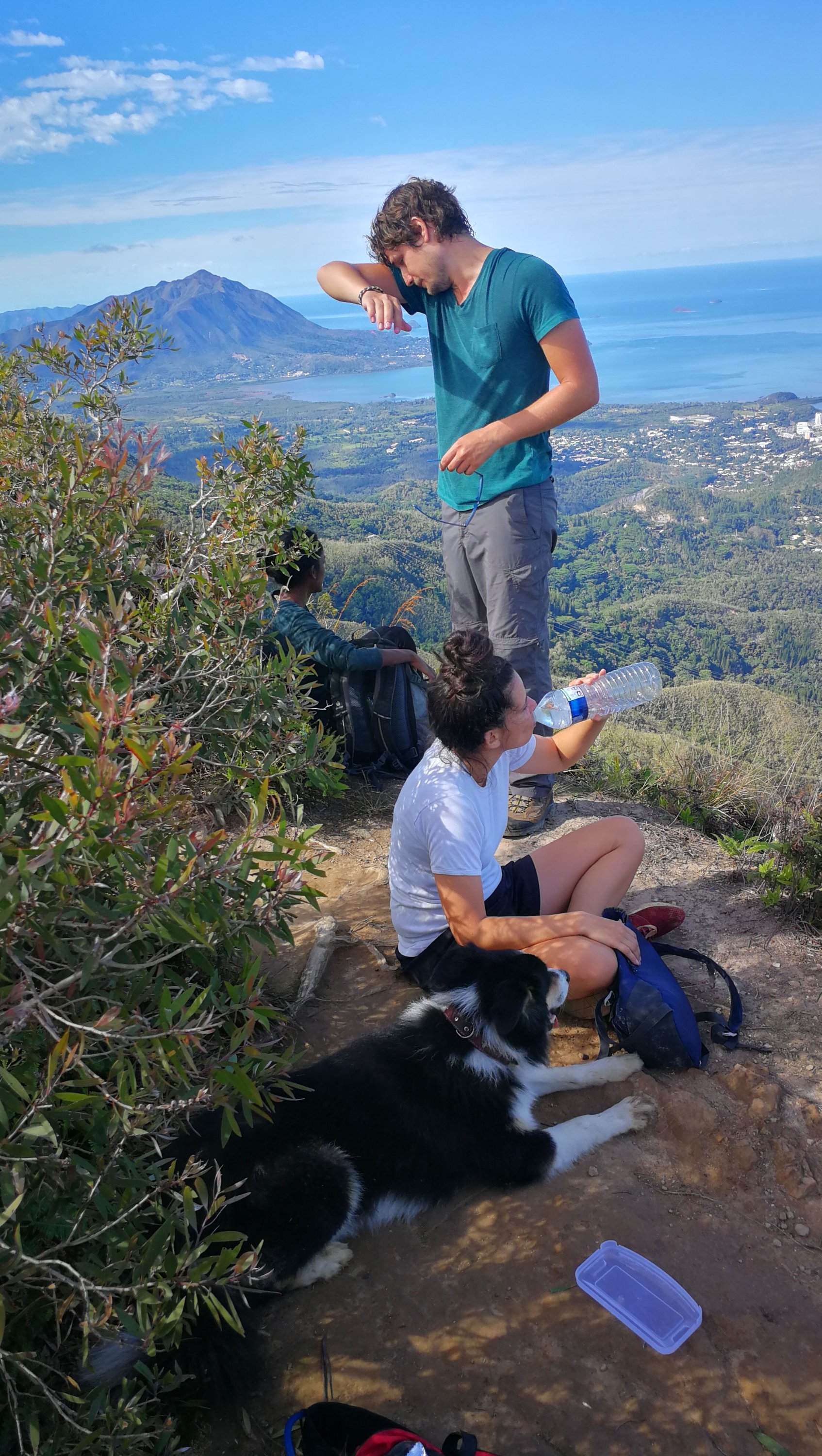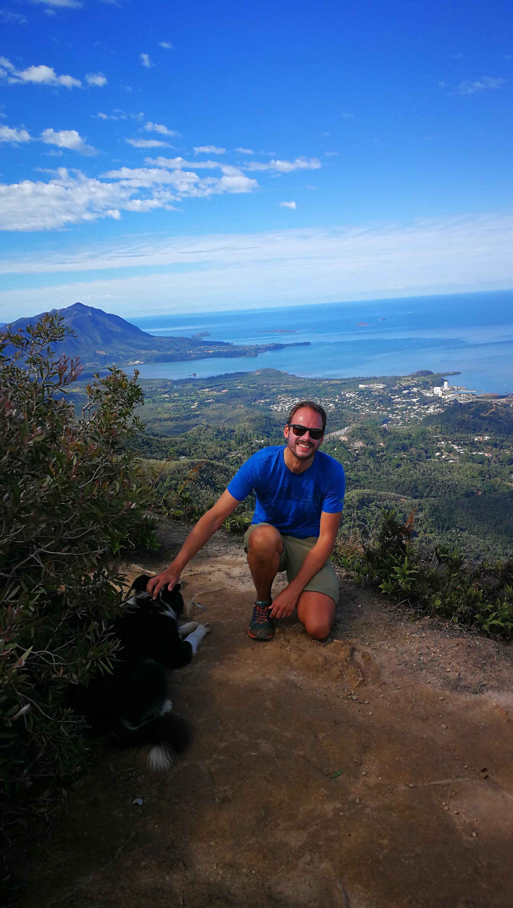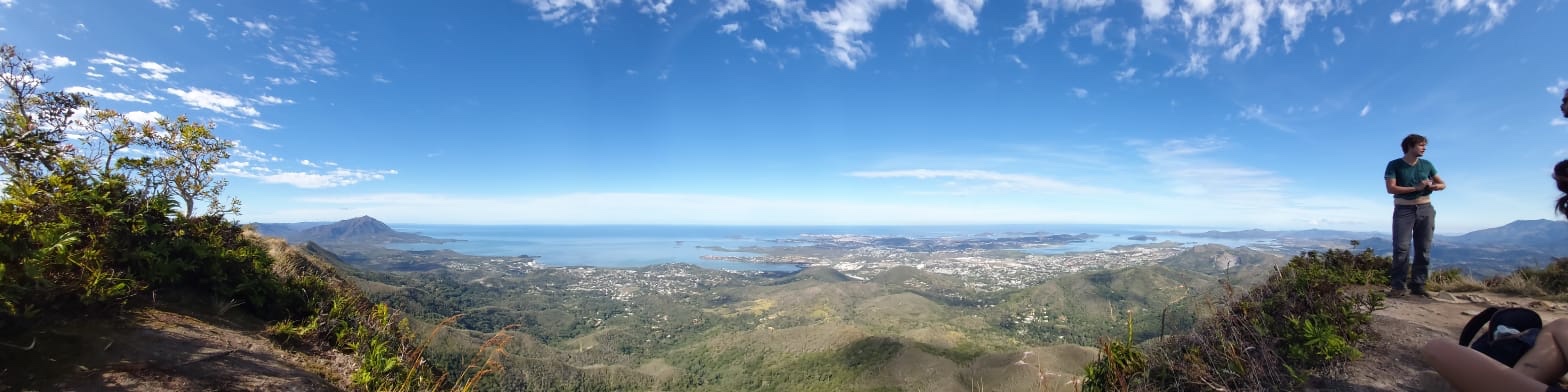 Vendredi après-midi, petit footing de 20 km et samedi matin, rando au Pic Malaoui. La végétation bien verte nous plonge au coeur de la flore calédonnienne. Le sentier est par endroit très étroit et boueux, des arbres jonchent le chemin. Ce fut sportif mais une fois le pic atteint, la vue à 360 degrés sur la forêt, le Mont Dore, Nouméa et la route qui s’enfonce vers le Nord est majestueuse. On s’est amusé à reconnaître les différents îlots et à repérer notre appartement.
