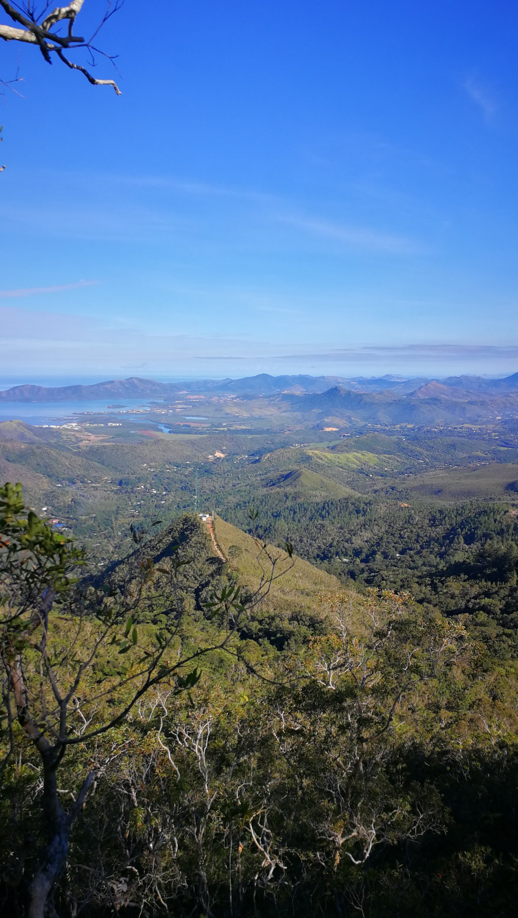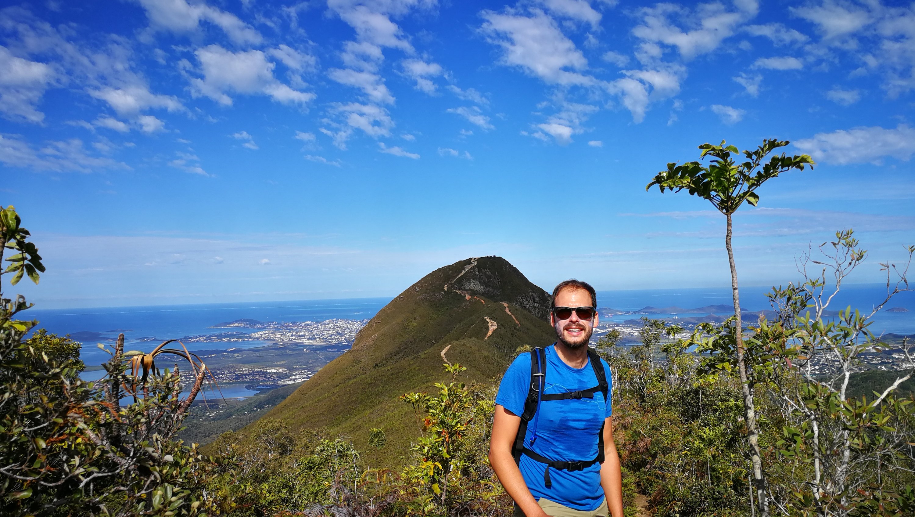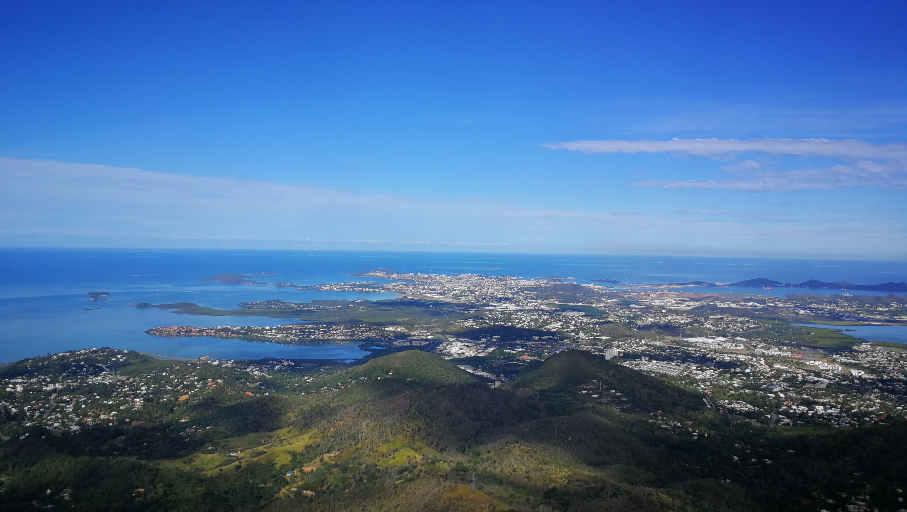 Vendredi après-midi, petit footing de 20 km et samedi matin, rando au Pic Malaoui. La végétation bien verte nous plonge au coeur de la flore calédonnienne. Le sentier est par endroit très étroit et boueux, des arbres jonchent le chemin. Ce fut sportif mais une fois le pic atteint, la vue à 360 degrés sur la forêt, le Mont Dore, Nouméa et la route qui s’enfonce vers le Nord est majestueuse. On s’est amusé à reconnaître les différents îlots et à repérer notre appartement.
